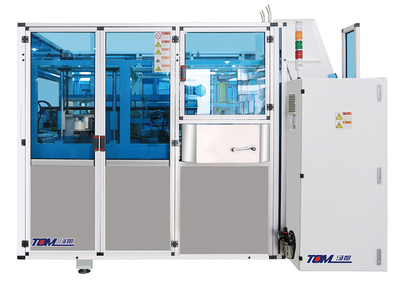 全自動(dòng)高速開箱機(jī)可以自動(dòng)完成開箱、成型、下底折葉曲,并現(xiàn)時(shí)完成下部膠帶粘貼。