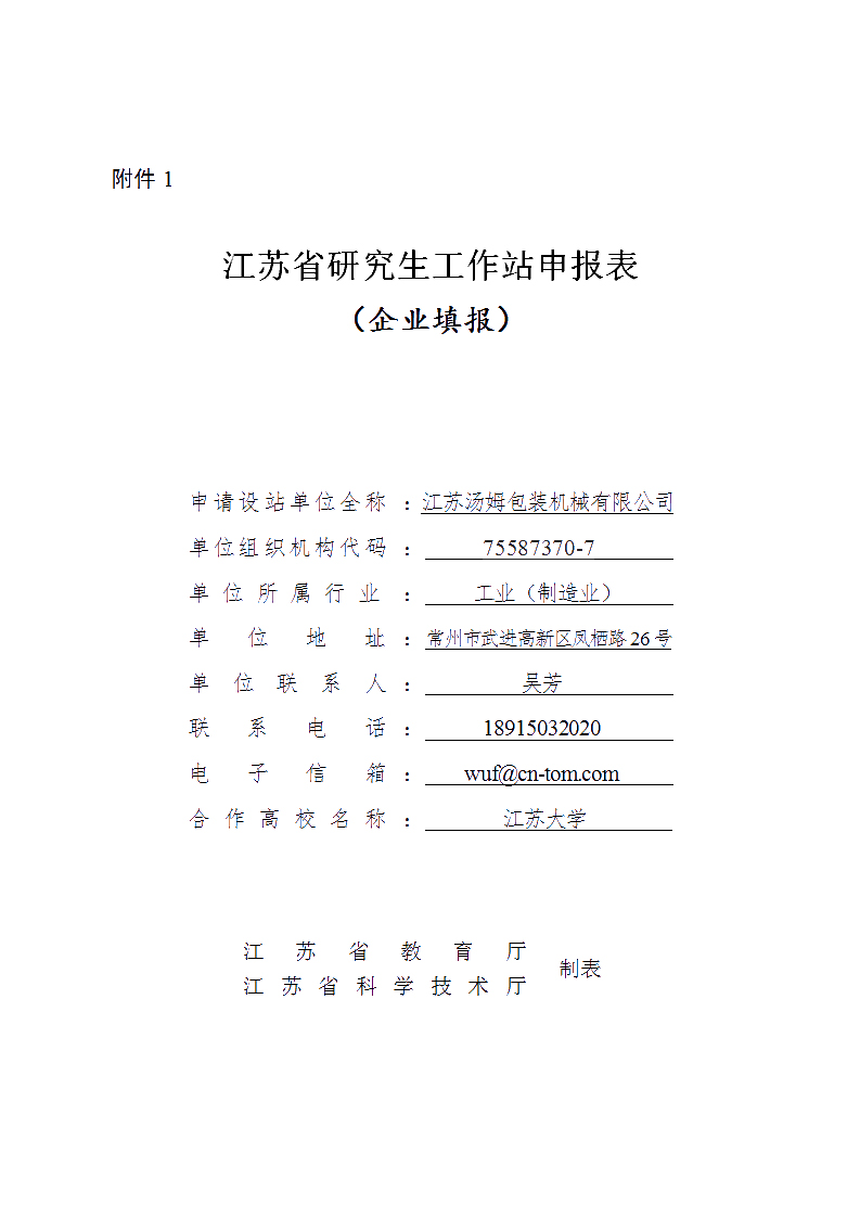 熱烈祝賀江蘇湯姆集團通過江蘇省研究生工作站初審!